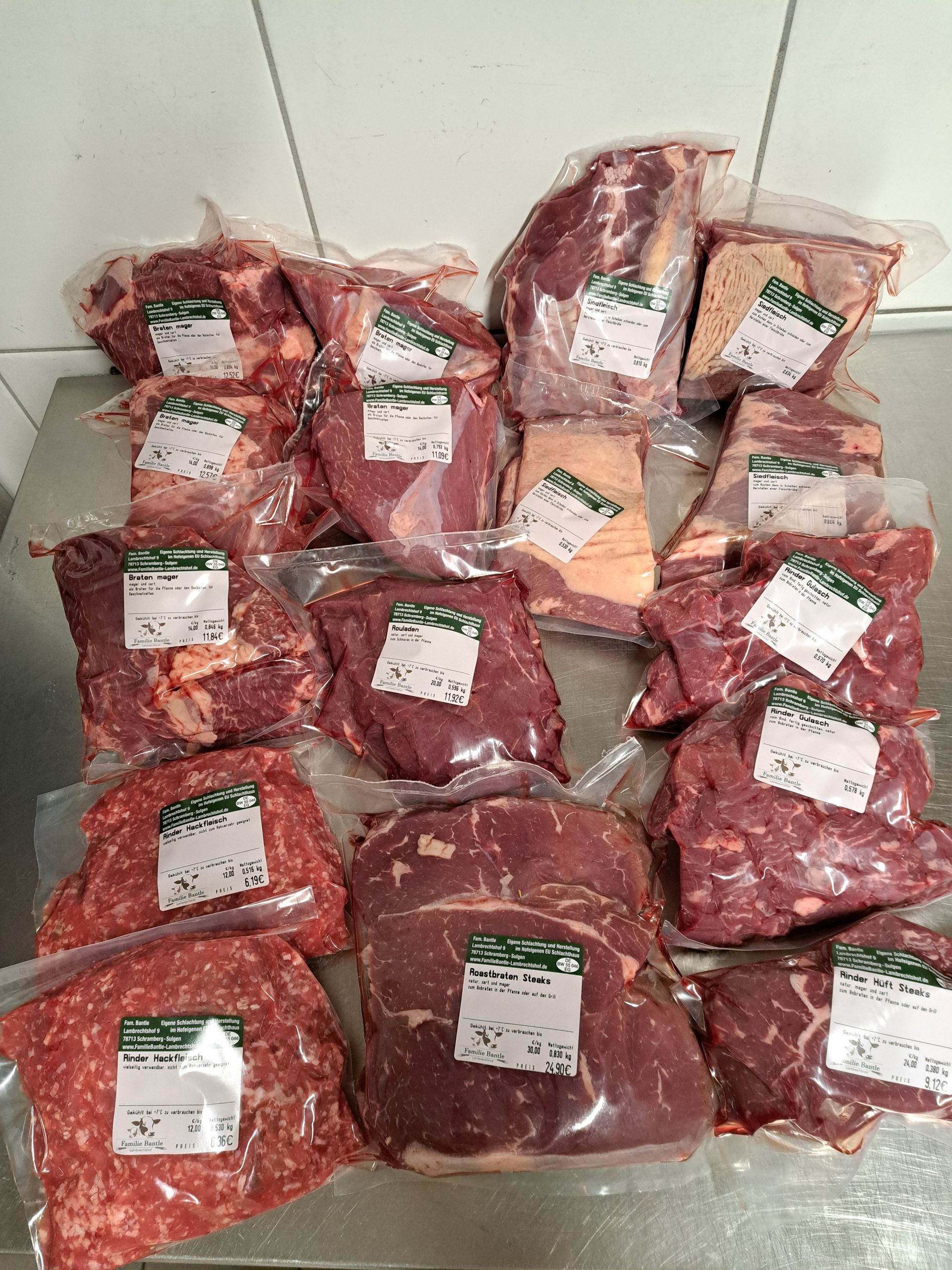 10Kg Rindfleisch auf Vorbestellung fertig portioniert, vakuumiert und gefriertruhenfertig.